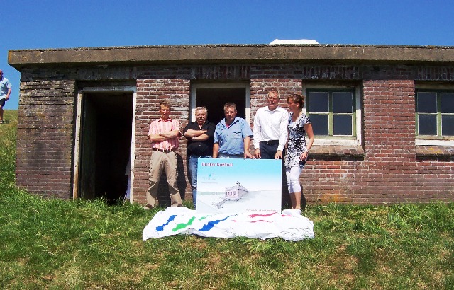 Afgevaardigden van het Wetterskip. Links: Jan Wolters, Wiltje Westra, Rinus Dorst, heer H.Boon en Marjan Terpstra.