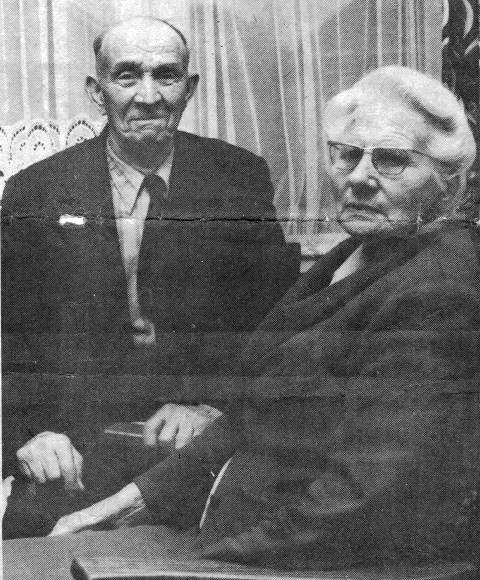 In bet lokaal van de Ned. Herv. gemeente te Sexbierum recipieert bet echtpaar Van Dijk-Postma uit Sexbierum om te herdenken dat zij 60 jaar geleden ,,de lapen gearsmieten".